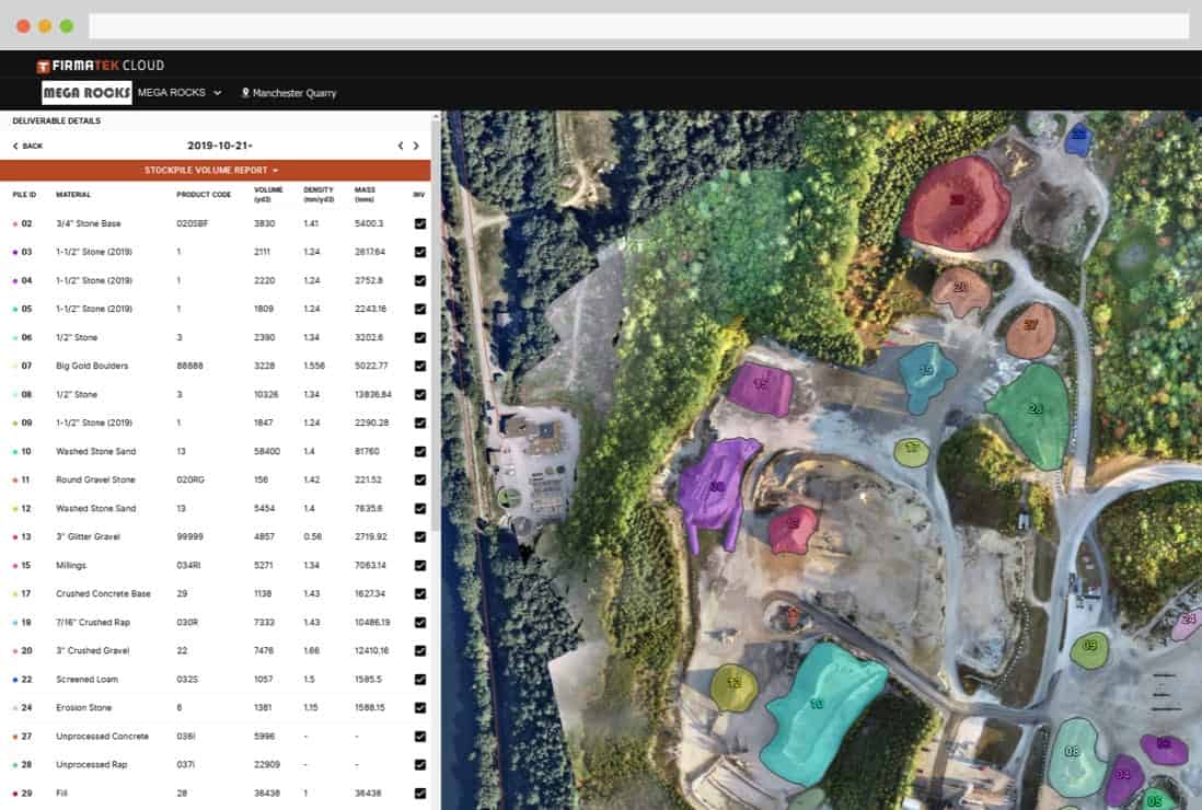 Firmatek's platform enables users to survey stockpiles, both indoors and outdoors, using orthophotos and Lidar scan data. By leveraging these technologies, the platform provides accurate measurements, generates 3D models, and calculates volumes efficiently and safely.
